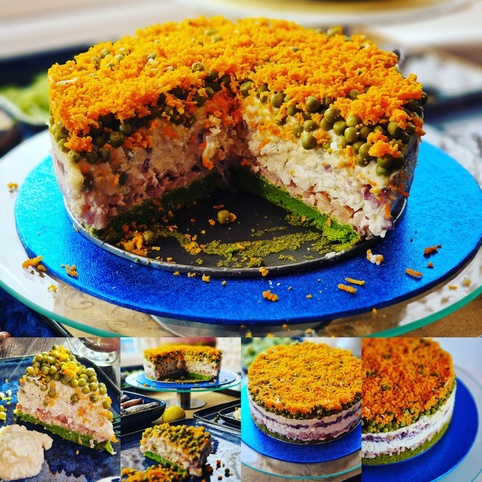 Šį receptą esu išbandžiusi ne vieną kartą, kol radau patogiausią sluoksniavimo tvarką ir geriausią konsistenciją, kad salotos gražiai pjaustytųsi kaip tortas. Pirmą kartą gaminau šeimos gimtadieniui, kai norėjosi ne dar vieno įprasto mišrainės dubens, o kažko „wow“ efekto. Nuo tada tai tapo mano patikrintu pasirinkimu, kai reikia vaišių stalui elegantiško užkandžio, kurį galima pasiruošti iš anksto ir ramiai patiekti atšaldytą.